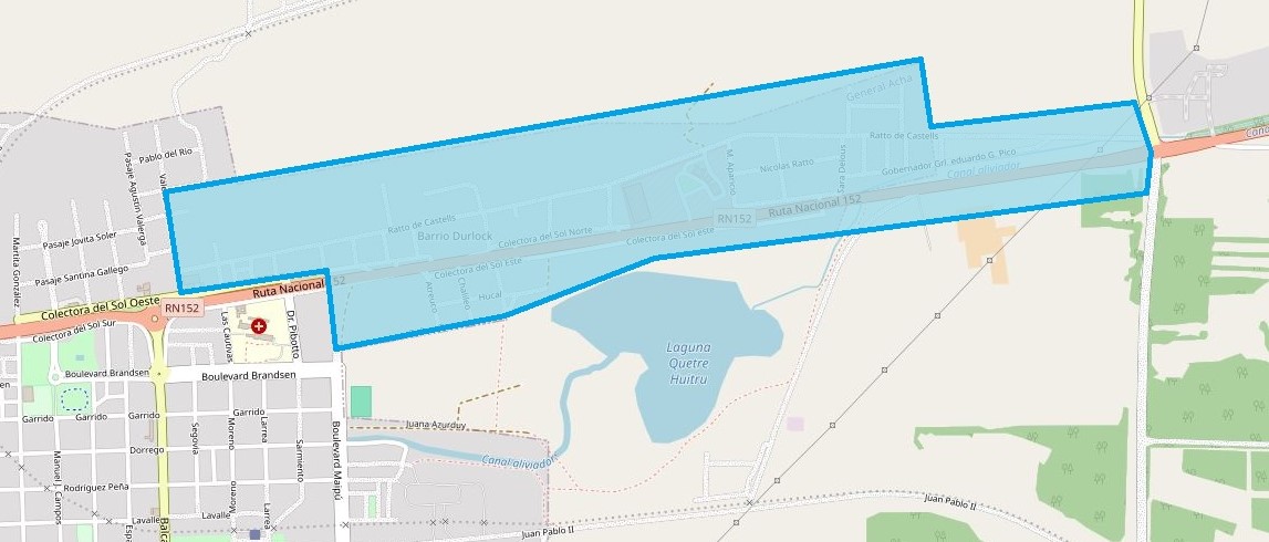 Zona afectada: Sector ubicado a ambos lados de Ruta Nacional Nº 152 desde calle Valentín Gutiérrez hasta Ruta Provincial Nº 9.